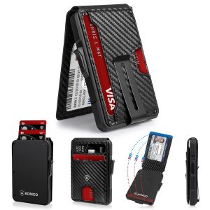AOMGO Slim Wallet for Men with Money Clip – RFID Blocking Minimalist Card Holder, Carbon Fiber Pattern, Holds 6+ Cards, Front Pocket Wallet for Men, Secure Trigger Pop-Up Design$29.99ADD TO CART