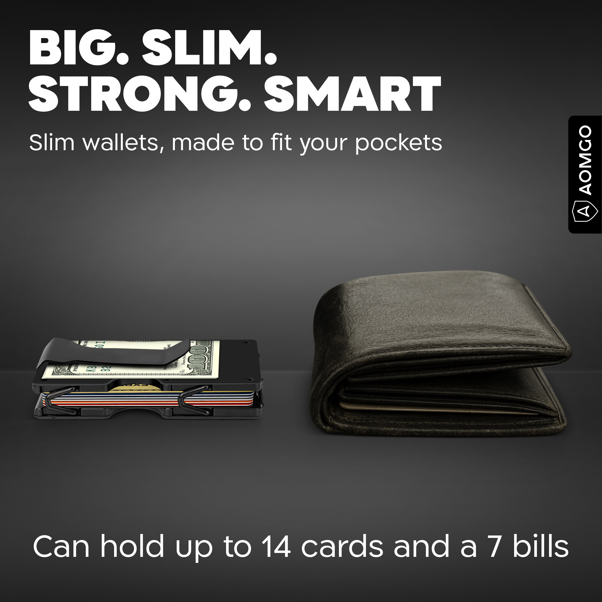 AOMGO Minimalist Fiber Wallet Men’s Slim Wallet with Money Clip, Black