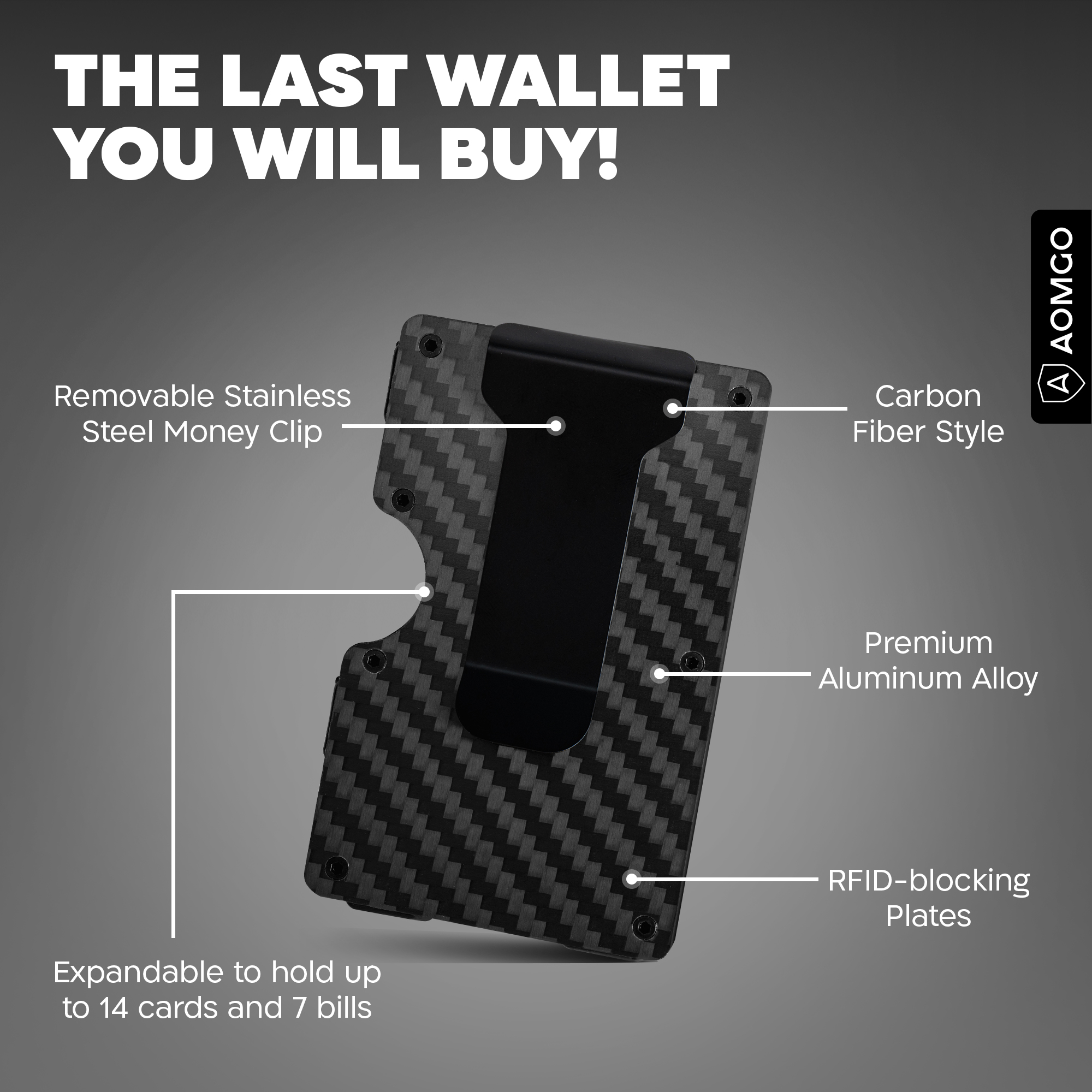 Minimalist Wallets for Men – Smart Carbon Fiber Wallet – RFID Blocking Front Pocket Credit Card Holder – Aluminum Metal Small Mens Wallets with Cash Strap